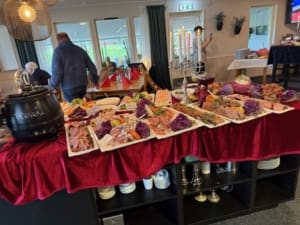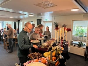 Dagens lunch bestod av helstekt kotlett med dragonsås – en rätt som avnjöts i gott sällskap med spelkompisarna.