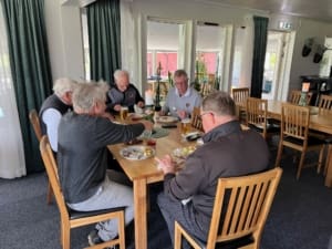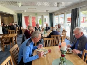 19:e hålet levererade i vanlig ordning en härlig lunch och i dag serverades stekt fläsk med löksås.